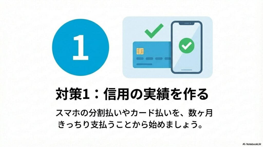 例えば、スマートフォンの機種代金をあえて分割にしたり、普段の買い物を1枚のクレジットカードに集約して毎月きっちり払う実績を3ヶ月~半年ほど積んでみてください。これだけで、審査会社からの信頼度は劇的に向上します。