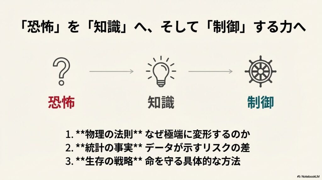 ※本記事は、物理学的メカニズムや過去の事故統計、一般的な安全理論に基づいて作成していますが、全ての事故において生存を保証するものではありません。